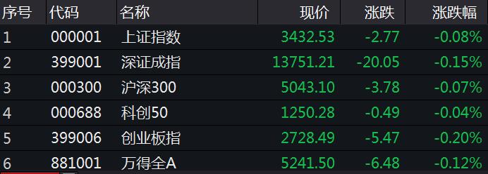 截至开盘,沪指跌0.08%,报3432.53点;深成指跌0.15%,报13751.21点;创业板指跌0.20%,报2728.49点。