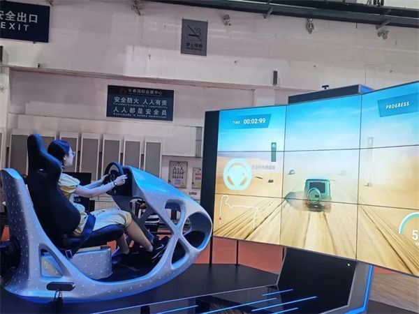 各大展馆内,很多汽车品牌准备新奇的互动体验。奔驰展台上的VR虚拟体验区傍边排了很多等待参与的现场观众。参与者手握方向盘,戴着VR眼镜,坐上模拟驾驶体验设备的悬空座椅上,系好安全带,启动、出发体验真实驾控的感受,比如遇到弯道、泥土路段时,座椅随之转向、颠簸,这种高科技让很多参与者大呼“过瘾”!