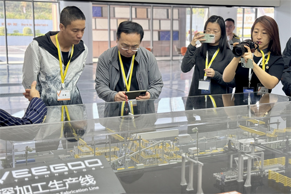 海外华媒采风团走进狮山镇的智能制造和高新技术企业。 (大公文汇网 记者 李紫妍 摄)