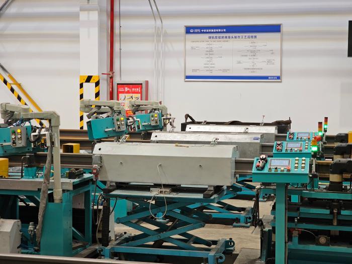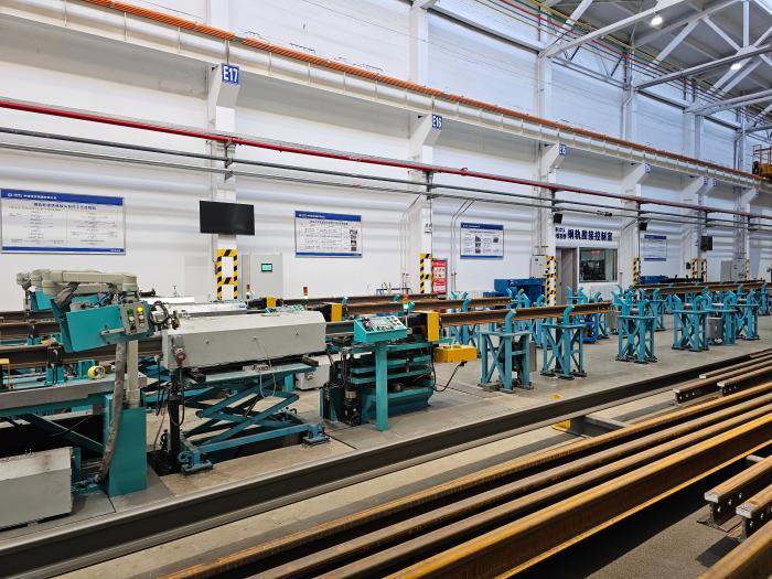 钢轨胶接绝缘接头的作用是在接头处把钢轨与钢轨、钢轨与道岔连接成具有与钢轨一样的整体性,以承受车轮通过钢轨接头处所产生的冲击力、纵向力、横向水平力及因温度变化钢轨所产生的温度附加力等,是轨道电路的重要组成部分,广泛应用于铁路道岔区间和无缝线路。“这条集成胶接面预处理、接头找正、温控等核心技术的生产线,依托中铁宝桥近60年的道岔制造经验,实现了核心技术的自主突破。通过自动找正装卡技术,钢轨对正精度达到0.1mm/m;精准温控系统将温度波动控制在±3℃范围内,使产品具备高平直度与胶层均匀性,完美匹配铁路高安全、长寿命运营需求,是公司培育和发展新质生产力的新成果。”中铁宝桥道岔分公司负责人李毅介绍。?