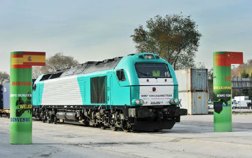 2014年12月9日,首趟由中国义乌开往西班牙马德里的中欧国际铁路货运班列“义新欧”抵达马德里阿布罗尼迦尔货运站。新华社发