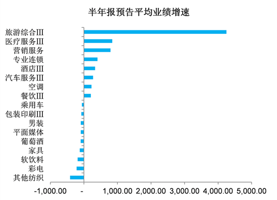 虽然消费行业整体增长稳健,但消费类行业上市公司的半年度业绩预告却出现了较大程度的分化,从细分子行业的角度看,旅游、医疗服务、营销服务等行业增速居前,而纺织业、彩电、家居等行业却出现了负增长,从这些行业上市公司的业绩预告中也能够看出,行业仍然惨淡,例如中银绒业表示“公司产品的平均销售价格较上年同期下降,致使公司销售毛利率有所下降”,毅昌股份表示“报告期内,电视机市场未见好转,毛利下降”。事实上,不仅仅是A股上市公司感受到中国服装零售行业的寒意,优衣库、ZARA、H&M等大众消费品牌也受中国市场带累,业绩增长放缓。