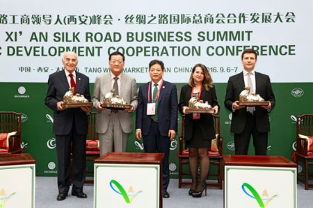 中国国际商会、丝绸之路国际总商会、陕西省贸促会于9月6日至7日在隋唐丝绸之路的起点——西安大唐西市共同主办的“丝绸之路工商领导人(西安)峰会•丝绸之路国际总商会合作发展大会”取得圆满成功。本次峰会嘉宾规格高端,议题设置精准,活动丰富务实,合作成果丰硕,在国际国内引起了热烈反响 中新社发 王保胜 摄