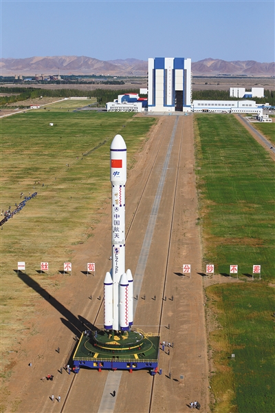 9月9日,执行天宫二号飞行任务的运载火箭垂直转运至发射区。新华社发
