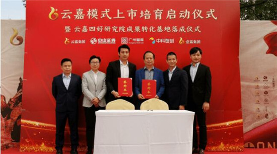 ▲云嘉集团总裁严考鑫与上市培育方签约10月20日,云嘉集团藉“陆加壹集团2020年启发战役”,在清远狮子湖举行云嘉模式上市培育工程启动、云嘉“四好”研究院成果转