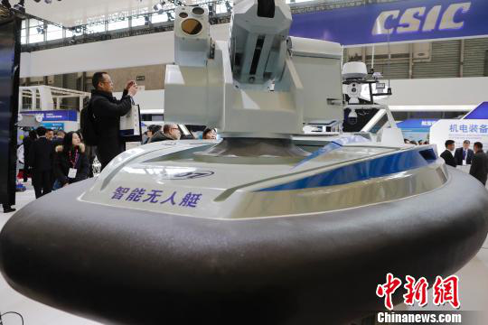 展会上许多企业带来了智能无人艇模型,深受业内人士的关注。(记者 殷立勤 摄影)