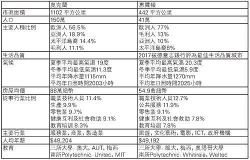 Selina:奥克兰还是惠灵顿?我列了个表格