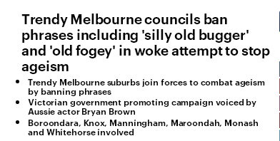 一些墨尔本议会近日联合起来反对年龄歧视,禁止使用“愚蠢的老家伙”(silly old bugger)和“老顽固”(old fogey)等词汇。
