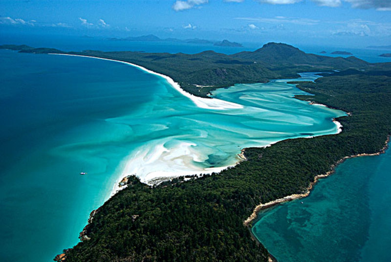 白天堂海滩有着闪亮的白色矽沙,是世界上最纯净的沙子之一。言语无法形容的一片纯白,不带一丝杂色,白天堂沙滩与珊瑚海的湛蓝海水融合在一起,让人感叹只有上帝的调色板,才能调出这种梦中的颜色。双脚插入白色沙子里,跋涉着走入轻轻拍打着海滩的温暖的海浪,你会马上明白为什么全世界的爱人都梦想来到这里。