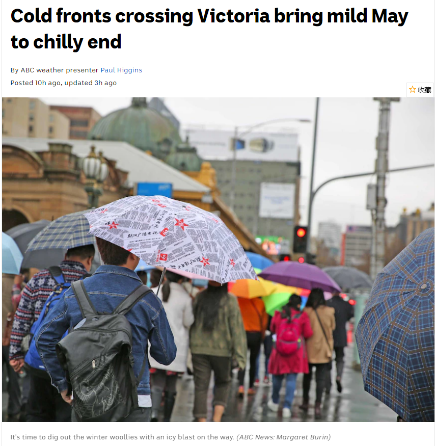 受冷锋过境影响,气象局(BOM)高级预报员德拉蒙特(TomDelamont)表示,墨尔本民众15日将迎来2021年以来最冷的一天。澳广网报道,一系列的冷锋将导致墨尔本今年5月原本