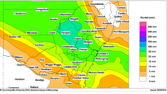 春季将至,异常暖湿气流横贯大陆,导致悉尼面临多雨天气。周五将迎来全面降雨。(澳洲气象局图片)据《悉尼先驱晨报》报道,8月,悉尼录得夜间温度最低温度至15.8度,为