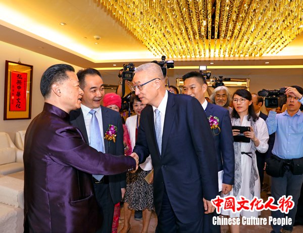 吴敦义向《黄帝内经》文化促进会会长王寅表示祝贺,希望两岸名人名家增进文化交流,共同谱写民族复兴的美好愿景
