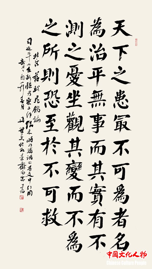 《天下之患 最不可为者 名为治平无事 而其实有不测之忧 坐观其变而不为之所 则恐至于不可救》 冉繁英书法作品