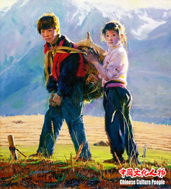《兄妹俩》 油画 135cmX120cm 2009年 韩玉臣作品,入选第十二届全国美展