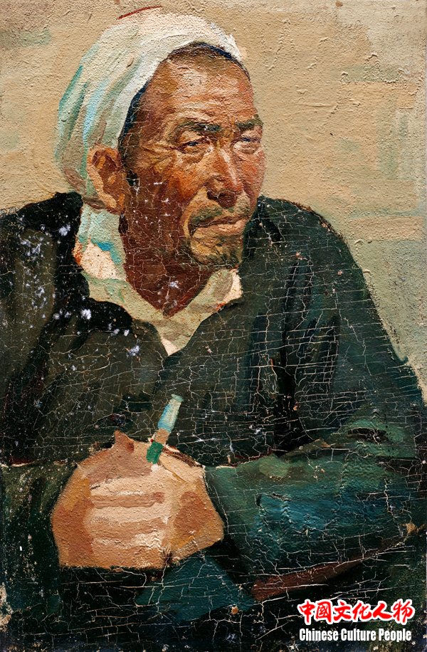 《太行老农》 油画 40cm×30cm 1975年 韩玉臣作品