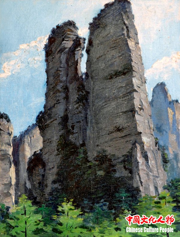 《张家界十八将军山》 油画写生 36cm×47cm 1986年 韩玉臣作品