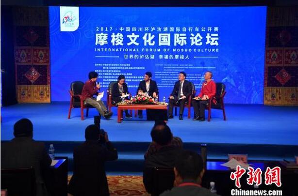 泸沽湖被称为“东方女儿国”,生活栖息在泸沽湖畔的摩梭人,被认为是中国唯一仍存在的母系氏族。为探讨传统摩梭文化丰富的内涵及其传承与保护,2017·中国四川环泸沽湖国际自行车公开赛暨摩梭文化国际论坛开展了包括“摩梭文化产业发展”主旨演讲、“摩梭文化国际传播”主旨演讲以及对话等环节。来自海内外的20余位专家学者齐聚一堂,从不同的专业领域各抒己见。