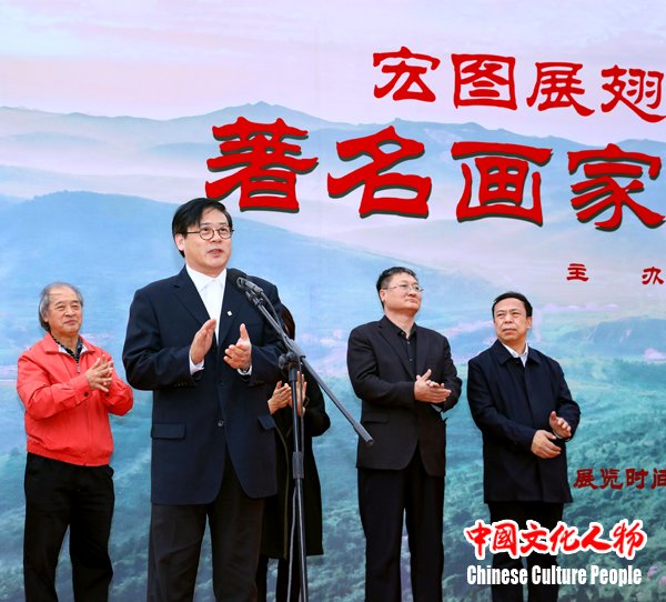 天津市文联党组书记、常务副主席万镜明在致辞中表示,“宏图展翅飞 辉煌新时代——著名画家王书平作品展”是京津冀三地协同发展,文化交融迈向更广领域、更深层次的真实写照。天津文联副主席、美协主席王书平同志,以反映时代精神和讴歌人民为己任。多年来,他不仅自己将艺术之根深深的扎在希望的田野、广阔的大地,而且带领全市广大美术家深入生活和基层,用手中画笔为时代喝彩,将艺术奉献给时代和人民。