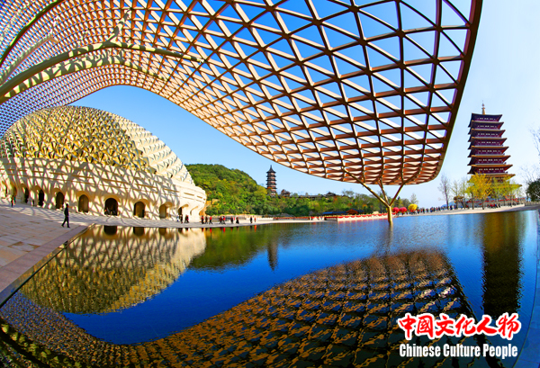 南京牛首山佛顶宫,其建筑分为大小穹顶两部分,大穹顶形如佛祖袈裟,与牛首东峰呼应,寓意深远,为“普和至美·艺结善缘——2017中日文化界高峰交流会”增添了浓厚的人文气息
