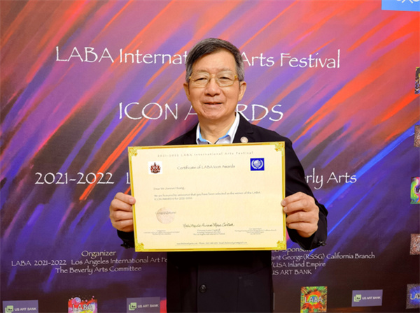 ▲黄建南在2021“LABA全球最具影响力艺术家”评选中位列第一,并获得“LABA国际艺术节公益标志奖”。