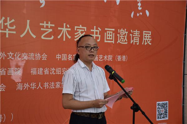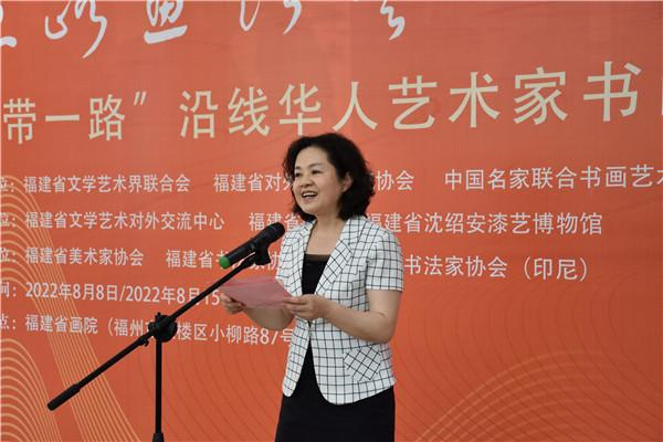 王秋梅代表主办单位致辞。她表示,活动充分发挥文联优势和文艺力量,以书画为纽带,紧密联系“一带一路”沿线国家和地区的华人文化艺术群体,择取展示中国变革和中国精神的题材,以艺术的形式展示“一带一路”建设的伟大成就,彰显自信自强、守正创新的中华文化时代光彩。她希望广大海外华人艺术家常来常往、以“艺”为媒,绘就更多文明互动交融的美好画卷,推动中国、福建与世界各国的交流合作,增强中华文化影响力,为实现中华民族伟大复兴中国梦贡献海内外文艺力量。