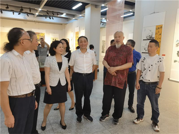 开幕式后,与会嘉宾一起参观画展,并对作品给予高度评价。