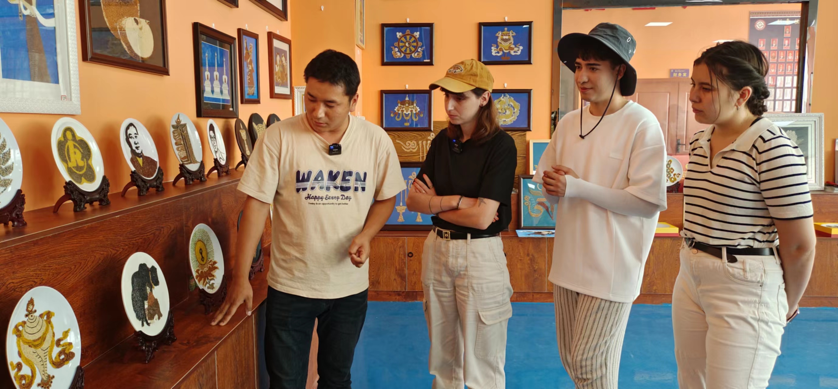 来到玉树的“歪果仁们”在石刻的文化魅力下跃跃欲试,跟随玛尼石刻非遗传承人体验了藏族古老传统手工技艺的魅力,和传承人共同完成了“扎西德勒 幸福快乐”玛尼石,并收到传承人的祝福。