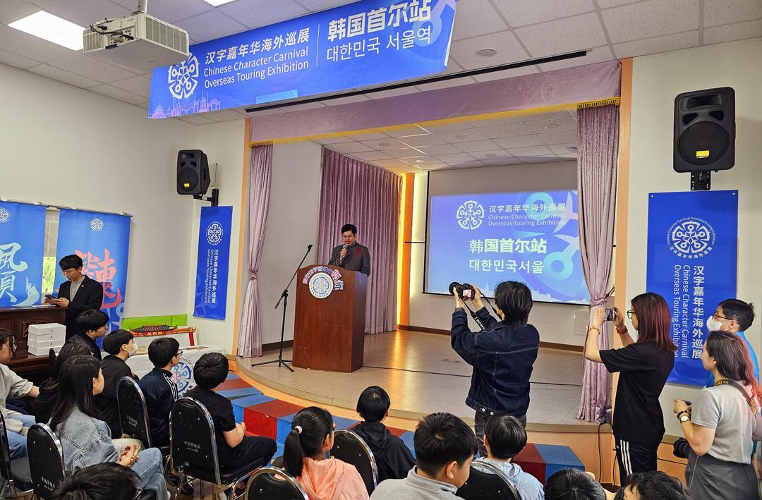 韩国新华报讯(韩国新华报记者 李茂娥 实习记者 鲍婉怡 摄影报道)当地时间5月13日上午10时,2025年“汉字嘉年华”海外巡展——首尔站在韩国首尔盛大开幕。此次巡展由北京海外联谊会、北京海淀地区海外联谊会主办,在中国驻首尔大使馆的指导和后援下,由北京国际汉语研修学院、永登浦华侨小学、韩华中国和平统一促进联合总会、中国在韩侨民协会总会、韩国中华总商会、全国同胞总联合会、韩国贵州商会联合承办,韩国中华国际文化交流协会、首尔中国侨民协会、韩中经济文化教育协会、韩国山东商会、中韩子女教育协会、中韩多文化交流协会、韩国福建商会、在韩福建同乡总会、在韩中国语教育协会、情满天下移住女性协会、韩国河北总商会、首尔华星艺术团、首尔华助中心、国际文化艺术振兴会、韩中文化交流艺术协会等参与协办。中国驻首尔大使馆公参兼总领事钟洪糯、北京海外联谊会副会长赵玉金、北京国际汉语研修学院副院长刘彦,韩华中国和平统一促进联合总会与中国在韩侨民协会总会会长王海军、永登浦华侨小学秦嗣义校长,有关承办、协办华侨华人社团负责人,以及现场学生80余人出席了开幕式。
