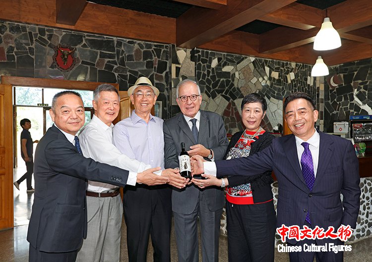 法国前驻华大使、欧中联合商会荣誉主席顾山,欧中联合商会副主席、香港总会主席张青在酒庄合影留念