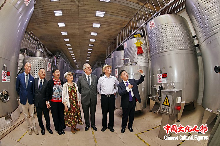法国前驻华大使、欧中联合商会荣誉主席顾山等中法两国嘉宾在波龙堡酒业执行总裁康文的陪同下参观波龙堡酒庄
