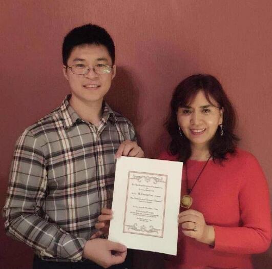 多伦多大学Leaders Speak协会主席陈子涵女士为曹荻明颁发邀请函