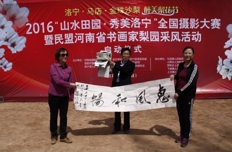 4月1日上午,为落实习近平总书记在文艺工作座谈会上的讲话精神,落实“凝聚力建设行动”,在民盟河南省委的组织下,盟员书画家、摄影家和有关媒体走近洛宁,走近民盟对口帮扶的基地马店镇,2016“山水田园·秀美洛宁”全国摄影大赛暨民盟河南省书画家梨园采风活动同日在洛启动。