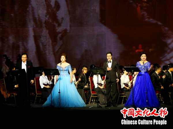 马金泉、崔京海、龚俊莉、李超四位艺术家领唱《世纪曙光》,倾情演绎出了极富感染力和震撼力的艺术精品