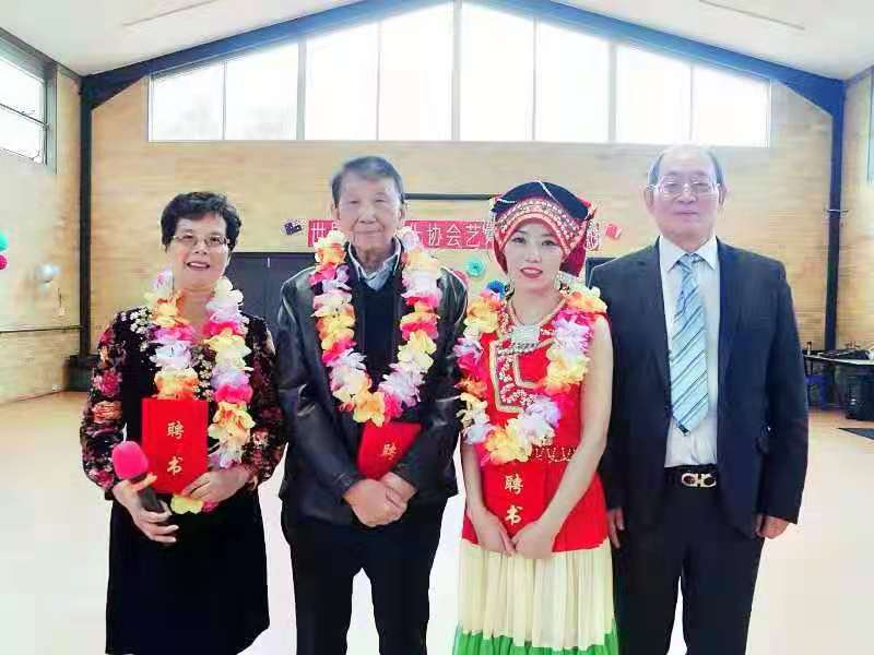 在活动中举行颁发聘书仪式,世界旗袍文化协会会长张宪舫太平绅士向尊敬的徐朗教授颁发“世界旗袍文化协会艺术团高级顾问”聘书,然后分别向郭亮、肖国荣两位颁发“世界旗袍文化协会副会长兼艺术团(行政、艺术)团长”聘书,艺术团成员献上花环,会场气氛达到高潮。