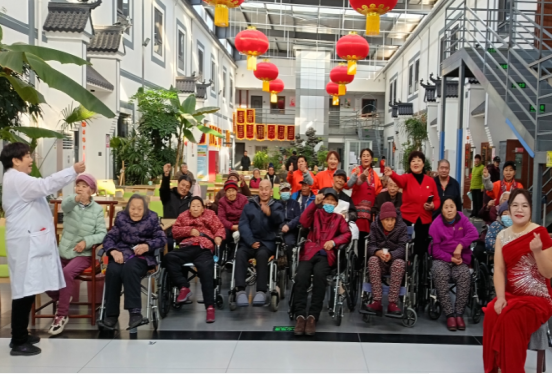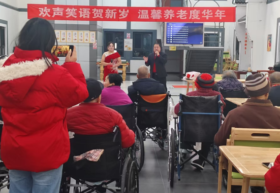 2025年1月28日上午,在喜庆祥和的氛围中,北京怀柔尚颐嘉养老院的入住老人和家属代表与工作人员一起,在养老院大堂举行了一场别开生面的迎春联欢会,迎接农历蛇年的到来。会场内红灯高挂,绿植吐翠。“欢声笑语贺新岁 温情养老度年华”的红色横幅悬挂在会场中央,显得格外醒目。参加联欢会的老人们在工作人员的陪同下,早早就来到了会场等待演出的开始。