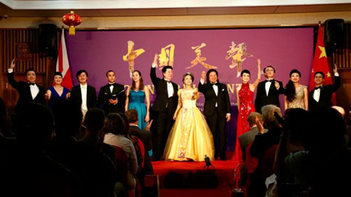 全体演员一道演绎“中国美声”音乐会的最后一曲中国侨网7月13日电据英国BBC中文网报道,“中国美声”伦敦音乐会于日前在中国驻英大使馆举行,中英观众欣赏到了来自