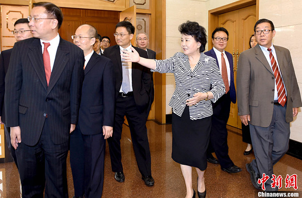 7月17日,中国国务院侨办主任裘援平、副主任王晓萍在北京会见国务院侨办海外专家咨询委员西藏考察团一行。中新社记者张勤摄7月17日,中国国务院侨办主任裘援平、副