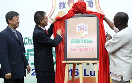 杨大使与姆万巴常秘共同为救助队揭牌中国侨网7月28日电据中国驻赞比亚大使馆消息,7月24日,驻赞比亚大使杨优明出席赞比亚华侨华人总会紧急医疗救助队成立仪式并致