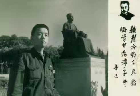 1974年,冰凌在上海虹口公园鲁迅塑像前留影。