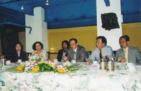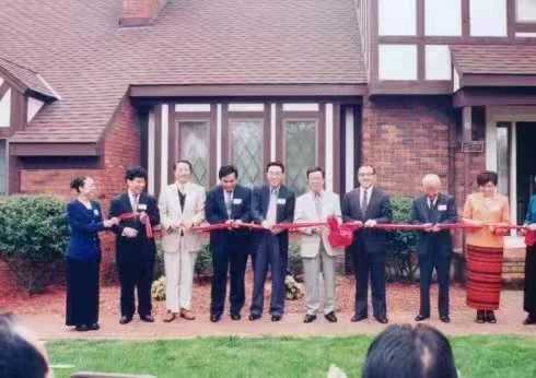 1998年,美国“中国作家之家”挂牌仪式上,嘉宾剪彩。
