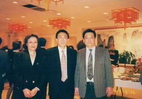 1997年,应中国常驻联合国代表团公使林承训参赞(中)的邀请,出席中国常驻联合国代表团举行的新春招待会。