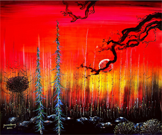 具有世界影响力的美国艺术界大评论家詹姆斯·戴钦特博士如是评论:“黄建南得益于丰富的经历及积累,使其融通中外,把中国传统的国画意境技法与西方的油画光影色彩完美结合,创立了独特的个人综合绘画系统和新体系”。