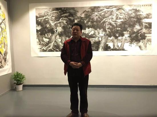索铁生:目前在国内很少有人以树为主题去表现,特别是用中国画去表现,我画树主要是借鉴了西画的光源效果,它的光源效果在哪里?我过去经常出去看油画,油画主要是光感效果好一些,特别是西画最主要用光用的好一些,虽然它用色彩去表现,中国画是以线造型去表现,它们表现方法不一样,但是艺术的本质都是一样的。我表现的这个树,特别是我去俄罗斯的东宫、夏宫,他们画的油画让人看了很震撼,他们画的一些植物、大树或者人物,包括法国的卢浮宫里边的油画,看了让人很激动、震撼。他们的画会让人震撼,我觉着从我的画中也表现一种,看了让人有一种与众不同的效果,把树通过光源的效果表现出来,树就是顶天立地,有阳刚之气,表现这个题材是我多年来的梦想,在我经过好多年的酝酿之后,通过大量的写生,把各种树的枝干,哪一种树是什么造型,树根树不一样,根据它不同的特点去创作自己喜欢的作品,就是说在树上我下了很大的功夫。