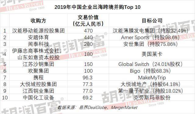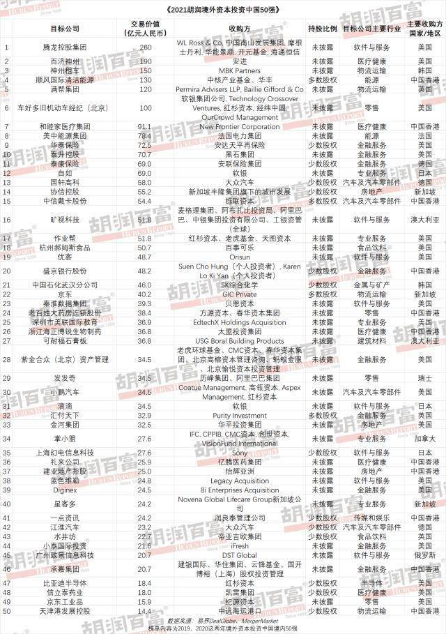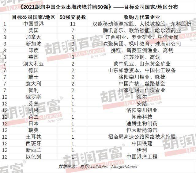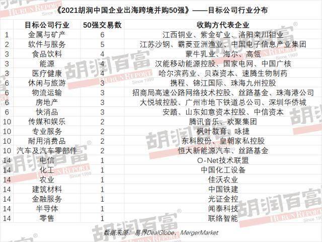 《2021胡润中国企业出海跨境并购50强》