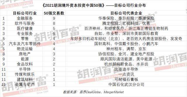 《2021胡润境外资本投资中国50强》——目标公司行业分布