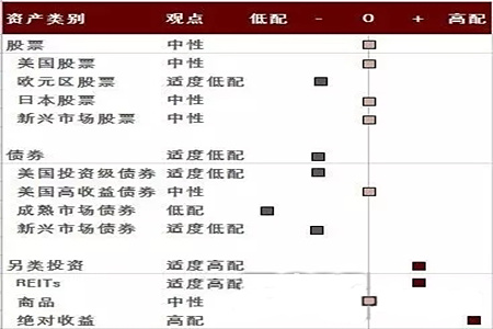 绝对收益品:高配。维持市场中性资产的配置头寸。自2015年起,全球资本市场的风险因素增多。波动率归来将是全球经济转型复苏期叠加美元加息周期的主要特征之一,股、债、汇、商品市场均面临高波动,套利机会的增多。我们建议投资者维持对市场中性绝对收益品种保持相对高配。