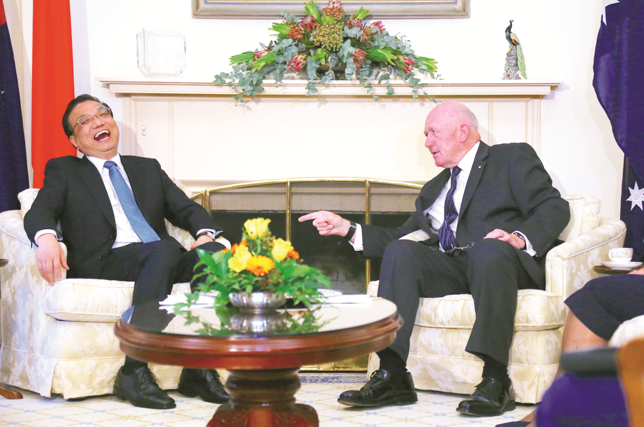 5. 李克强与澳大利亚总督科斯格罗夫(Peter Cosgrove)进行了会晤,聊了些什么,让他笑成了这样?
