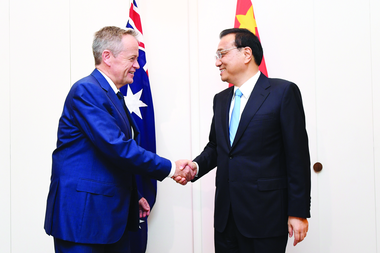 4. 李克强与澳洲工党领袖、反对党领袖薛顿(Bill Shorten)会面,两人笑得多甜……