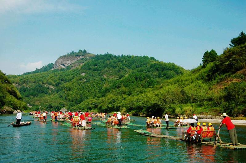 崀山旅游生态良好,是人们旅游、休闲的理想去处。图为游客在景区夫夷江漂流。杨坚摄
