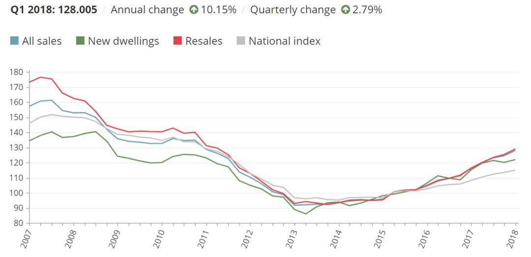 不止都柏林,爱尔兰大部分城市第三季度的房价同比涨幅都超过了5%,中部地区有些城市房价涨幅甚至超过了10%。